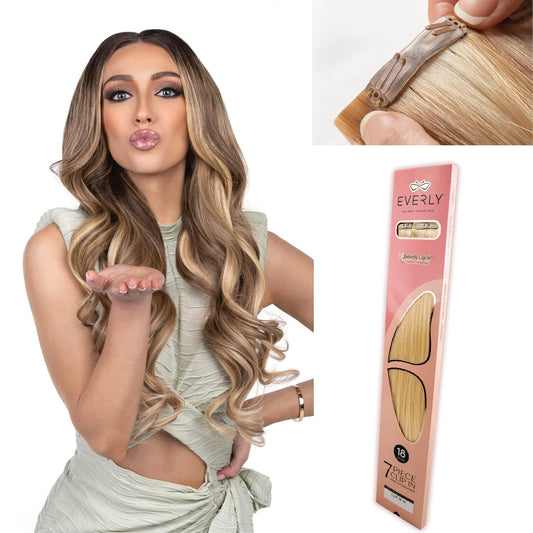 Everly 7 piece clip-in extentions 100% Remy Human hair - color 613