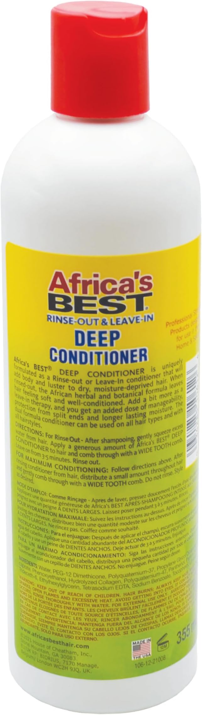 Restore moisture, strengthen strands, and revitalize dry, damaged hair with Africa''s Best Deep Conditioner. This intensive conditioning treatment is enriched with essential proteins, botanical extracts, and nourishing oils to deeply penetrate the hair shaft, improving elasticity and preventing breakage. Perfect for all hair types, this deep conditioner leaves hair feeling soft, silky, and more manageable after just one use.