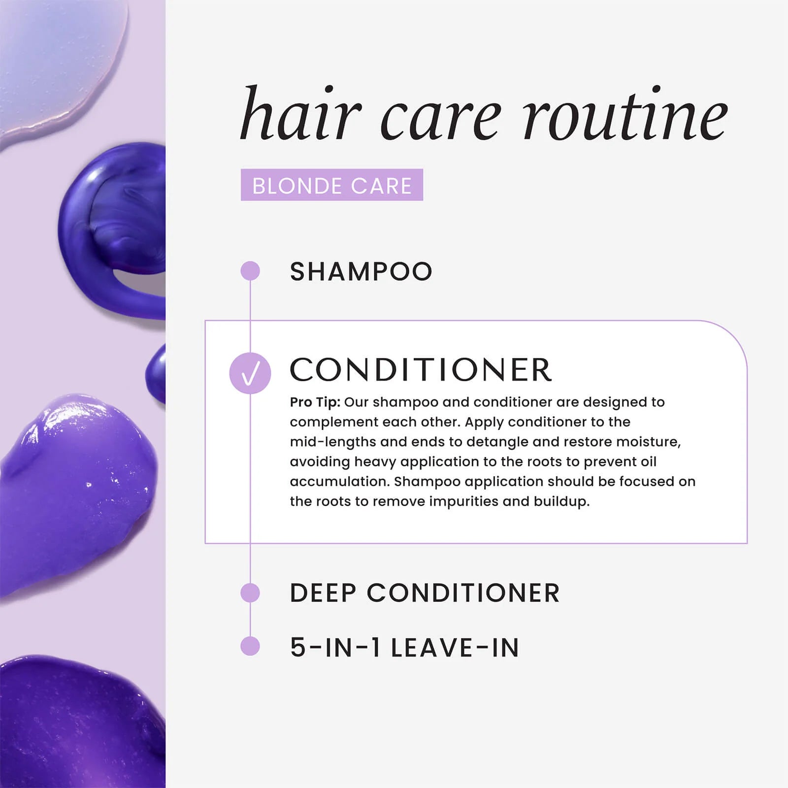 This highly pigmented, violet formula deeply moisturizes while cancelling out unwanted warm, brassy tones for a cooler shade of blonde.