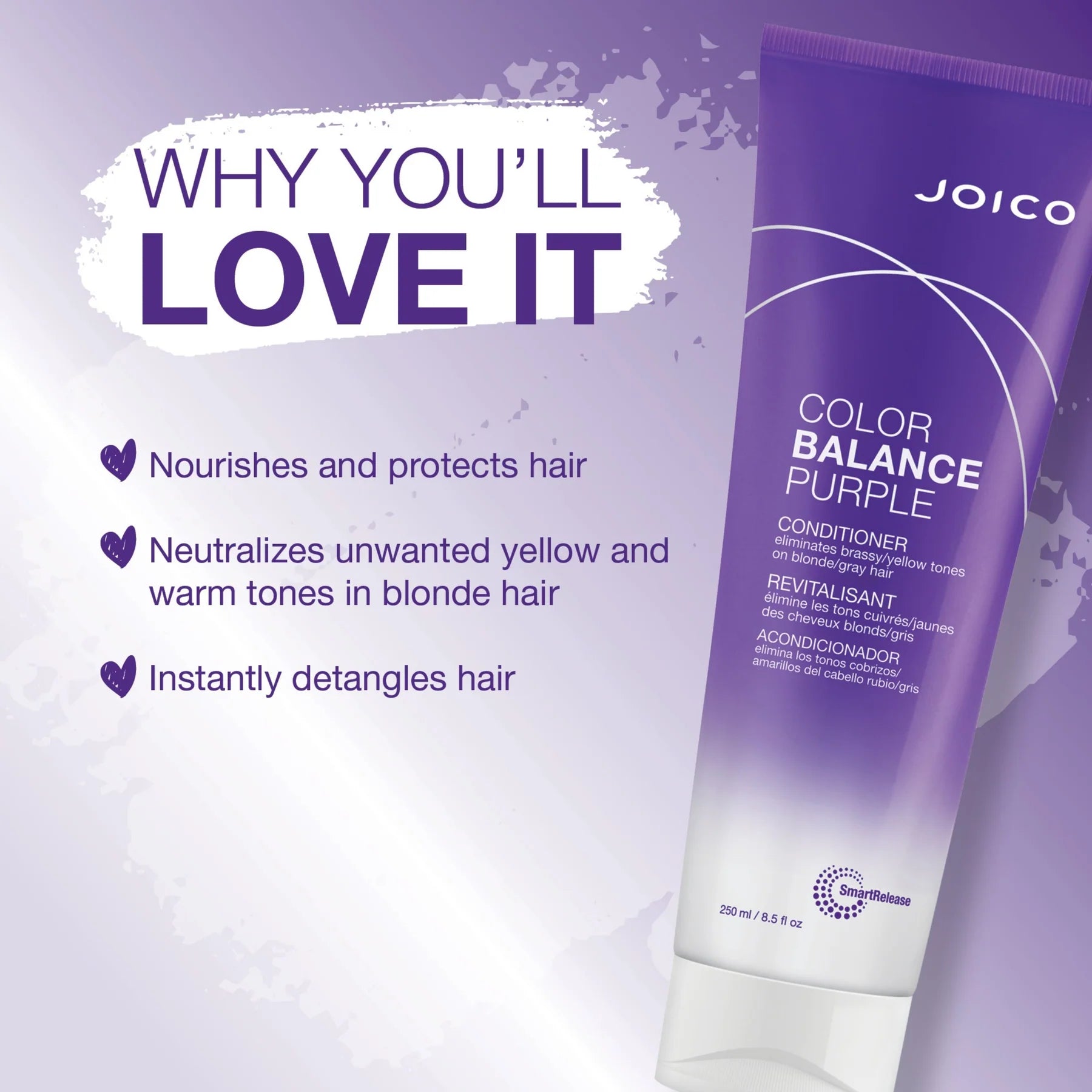 Color Balance Purple paraben-free conditioner neutralizes unwanted yellow and warm tones in blond hair. Instantly nourishes, protects and detangles hair.