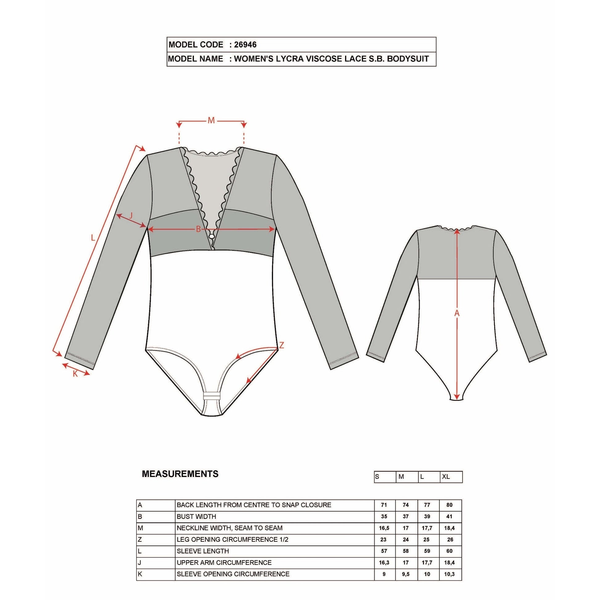 Unveil timeless elegance with our Women's Black Lace Bodysuit, crafted from a luxurious blend of 96% viscose and 4% elastane for exceptional softness, stretch, and breathability. Designed to accentuate the feminine silhouette, this figure-hugging piece features long, semi-sheer lace sleeves and an intricately detailed lace upper back, adding a touch of romance and sultry charm to your look.