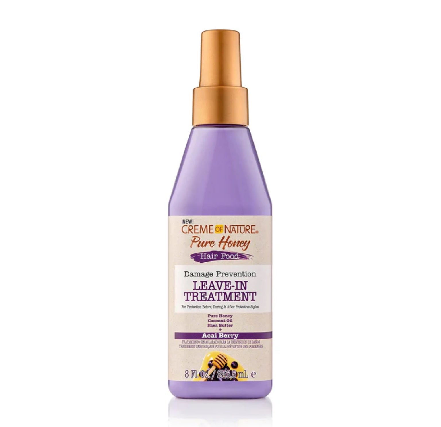 Creme of Nature Pure Honey Hair Food Damage Prevention Leave‐In Treatment is formulated with our signature blend of Pure Honey, Natural Coconut Oil & Shea Butter.